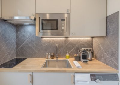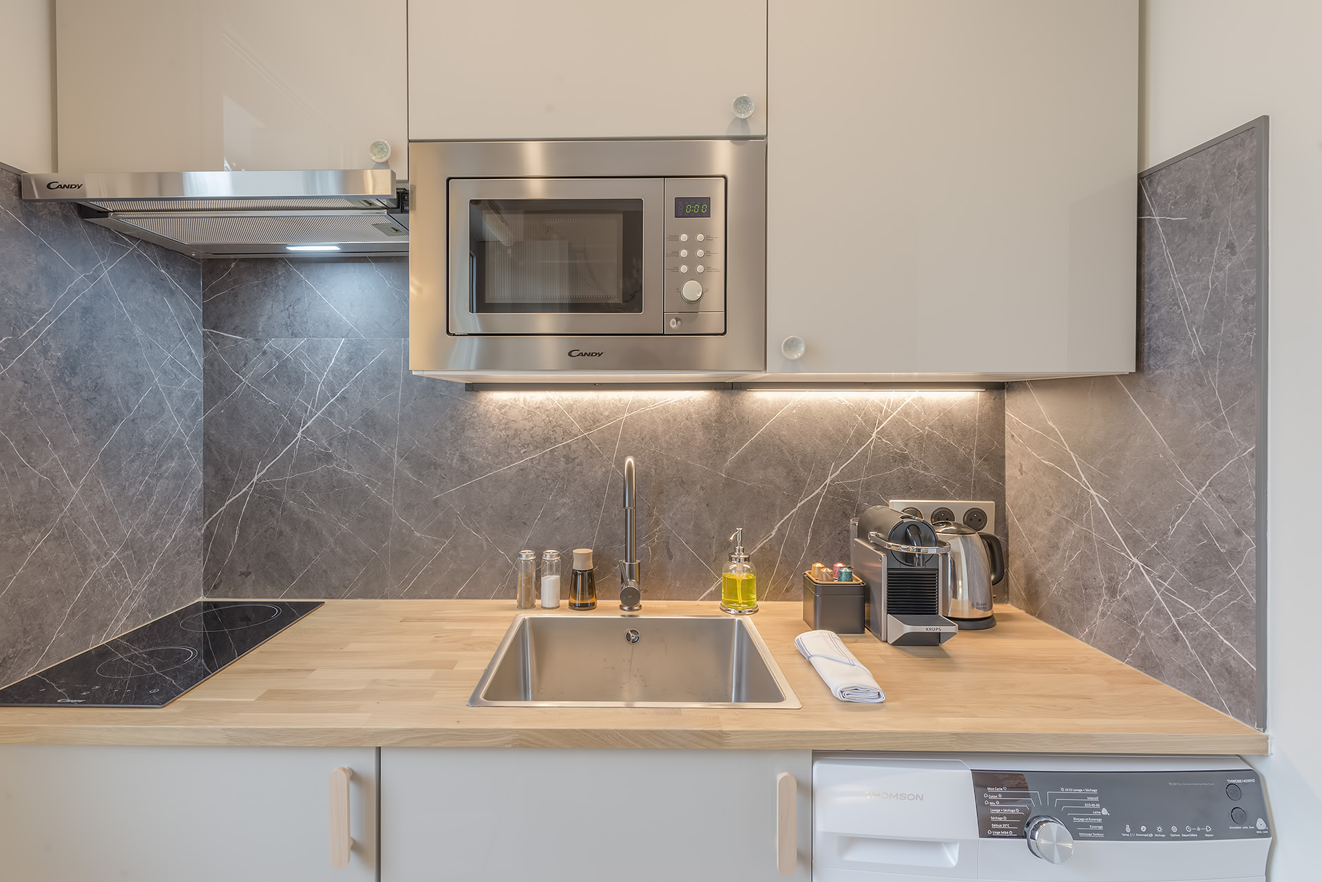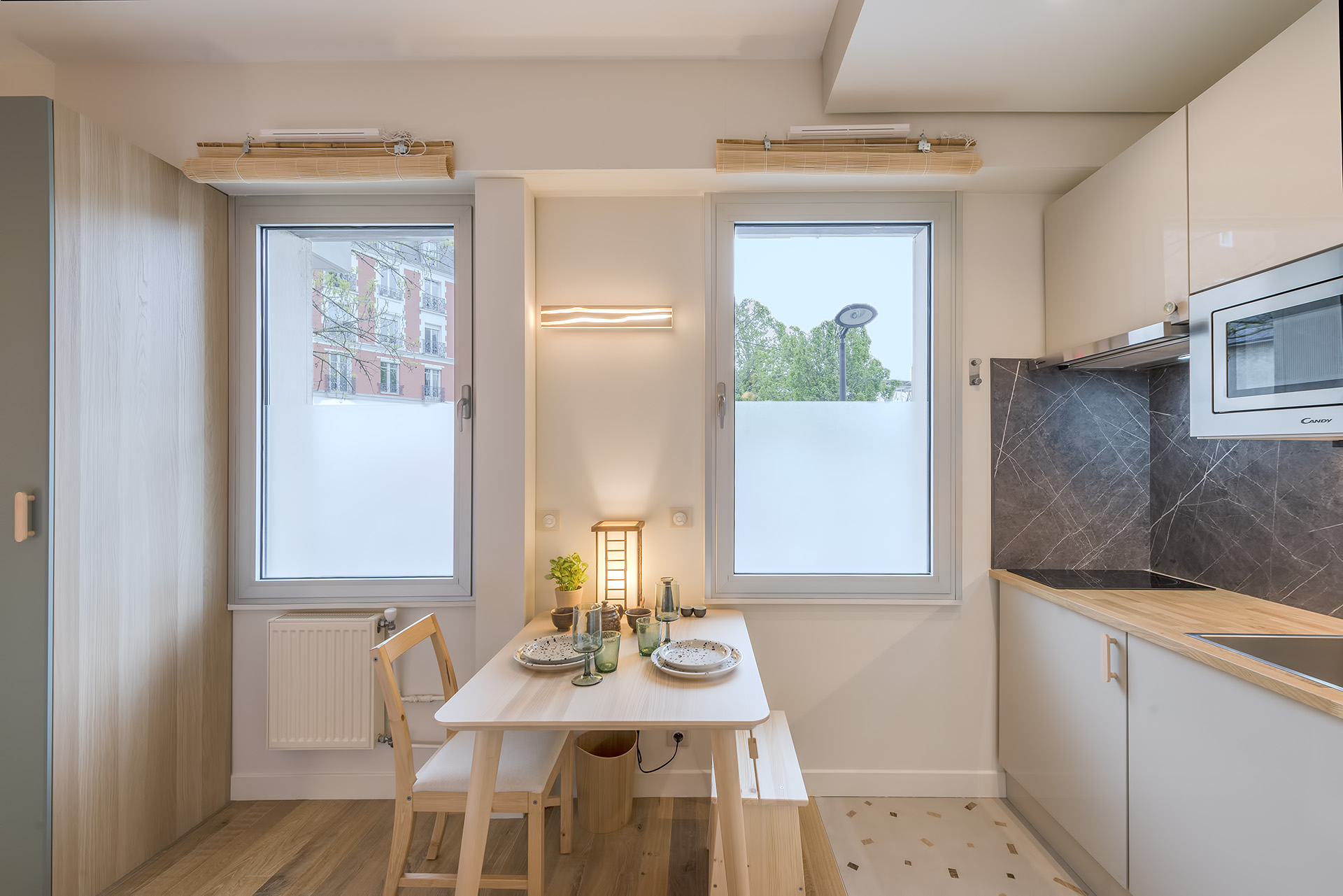 La cuisine est entièrement équipée et vous permettra de déguster de délicieux sushis sur des assiettes japonaises typiques en bois.