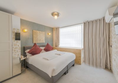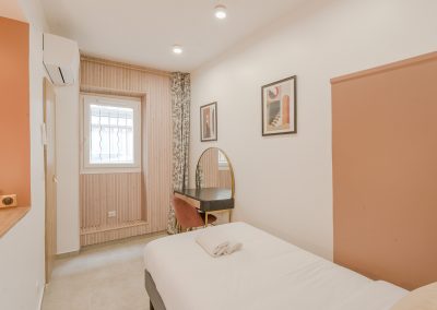 Stupéfaits, vous décidez de partir à “l’aventure” et de vous “promener” dans l’appartement. Vous souriez et vous entrez dans la seconde chambre. Grand lit double Tempur queen size ultra confort, rangements pour vos effets personnels, télé 4K en face du lit.. l’ambiance y est chaleureuse, idéale pour des nuits agréables.